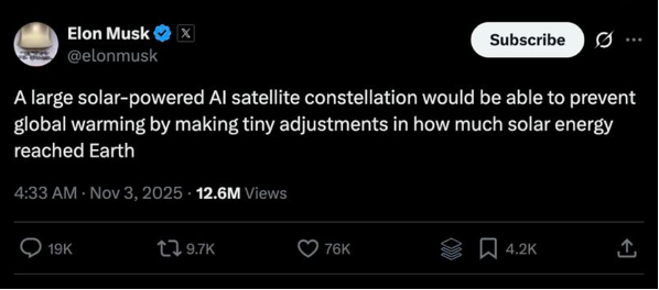 Source: Screenshot from X, [@elonmusk], 3 November 2025.